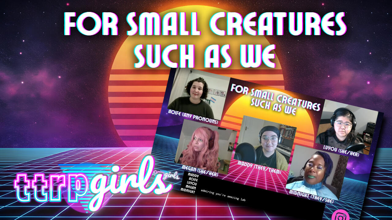 For Small Creatures Such As We is a solo/co-op RPG by Anna Blackwell about being a human captain in charge of an alien crew. Inspired by media such as Firefly and A Long Way To A Small Angry Planet, it is a game about exploration not just of the wider galaxy but of the aliens you share your ship with.